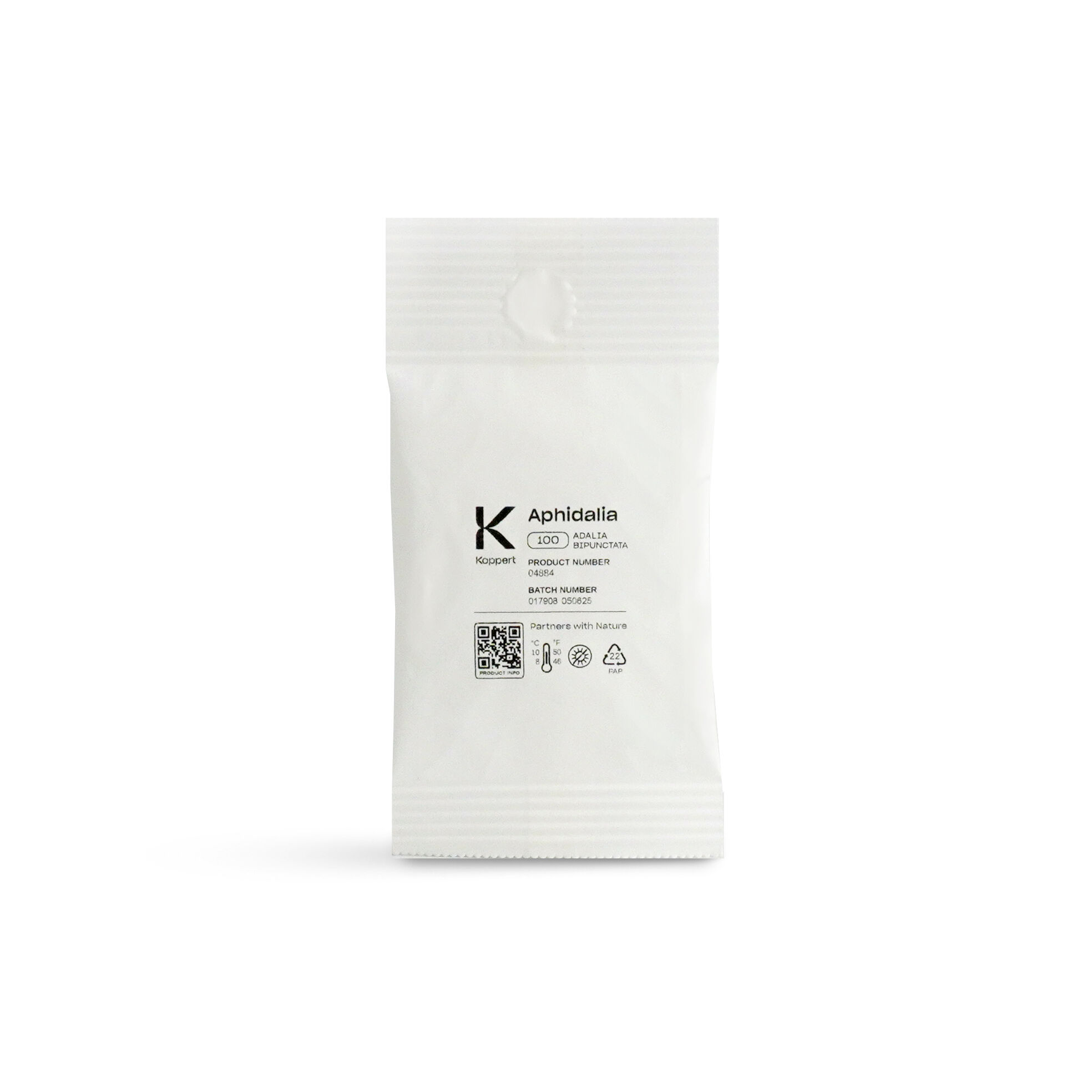 Il dosaggio di Aphidalia dipende dal clima e dalle dimensioni degli alberi e va sempre adattato alla situazione specifica. Iniziare l'introduzione non appena vengono rilevati i primi afidi sugli alberi. Utilizzare almeno un sacchetto di cotone per albero e fino a 3 sacchetti per alberi di grandi dimensioni. Per una consulenza sulla migliore strategia da applicare, si consiglia di rivolgersi a un consulente Koppert o a un distributore autorizzato di prodotti Koppert.