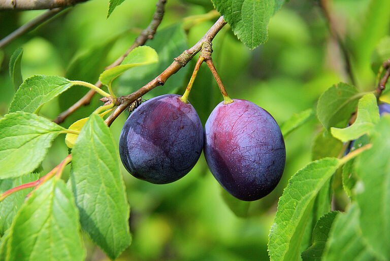 La prugna è una drupa, pertanto la sua polpa soda e succosa contiene un unico seme duro. Solitamente, la prugna non è troppo grande (ha un diametro compreso tra 2,5 e 7,5 cm) e la sua forma è globosa o più ovale. La buccia della prugna è morbida con uno strato di cera naturale.