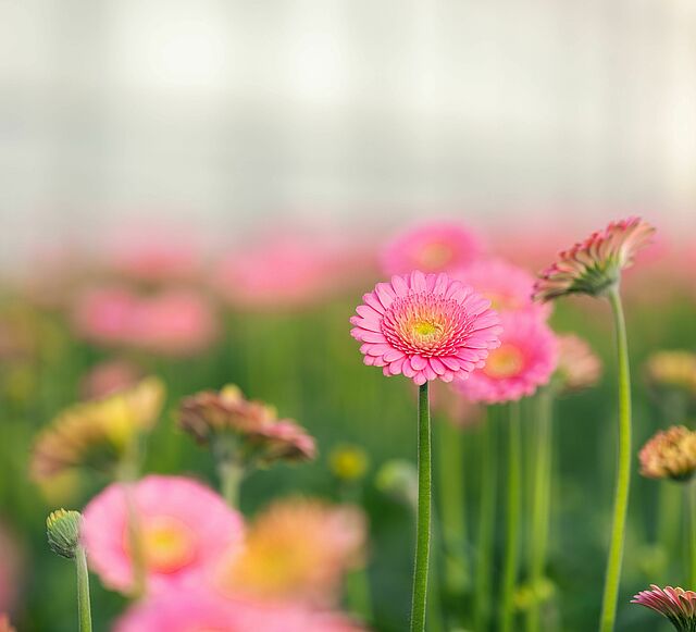 La gerbera appartiene alla famiglia delle margherite o Asteraceae. La pianta da fiore è originaria dal Sud Africa e si è sviluppata tra l'altro nella provincia del Capo e nella regione del Transvaal.