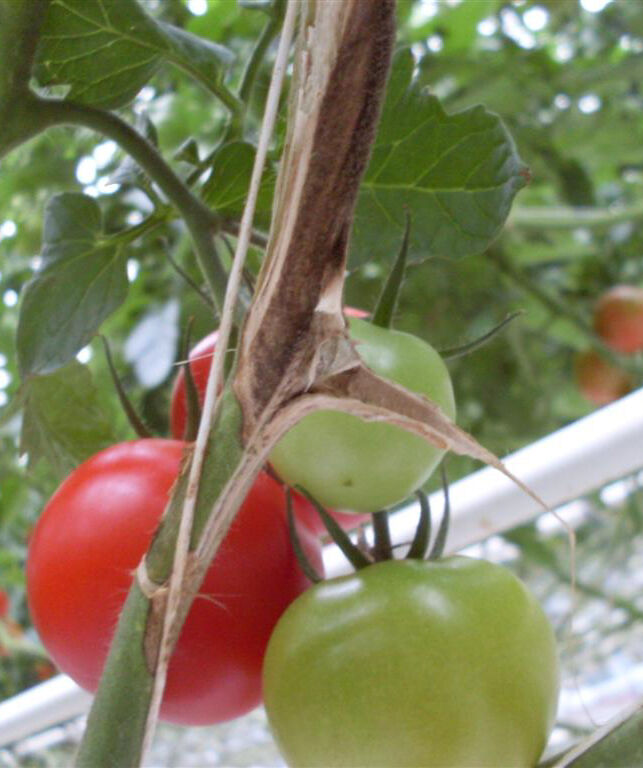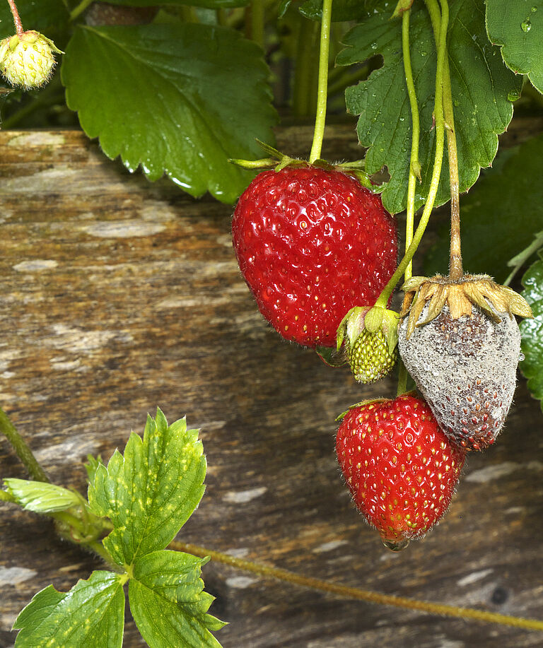 Nelle verdure e nelle fragole, la botrite (Botryotinia fuckeliana / Botrytis cinerea)colpisce i frutti. Nelle piante in vaso, le talee muoiono a causa di un'infezione da propagazione da parte delle piante madri infette.