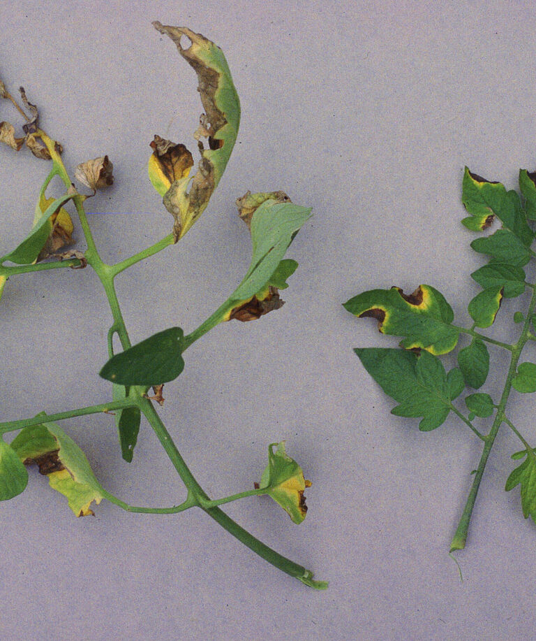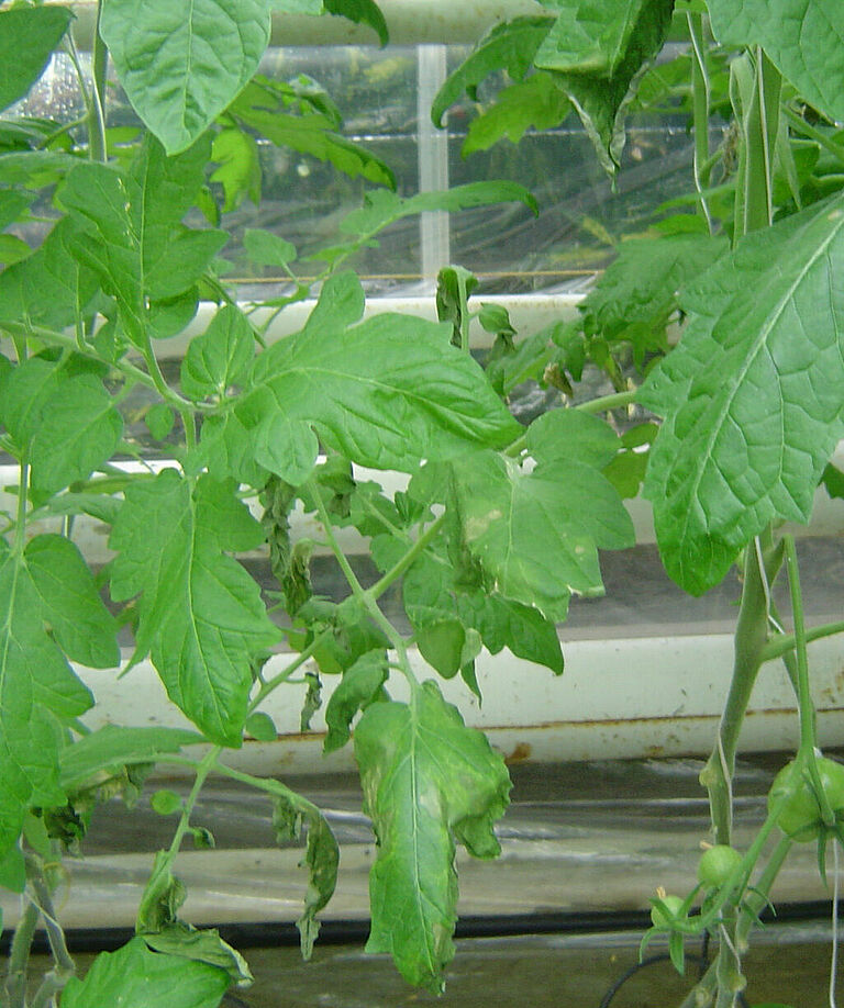 Il Clavibacter provoca macchie su steli, foglie e frutti. Foglie e germogli appassiscono. Sulle foglie inferiori, si verificano lesioni bianche simili a vesciche, che assumono di seguito un colore marrone e possono unirsi fra loro. Le foglie appassiscono e si arricciano verso l'alto, spesso iniziando da un lato della pianta. Pur diventando marroni, le foglie non cadono. Su steli e germogli si formano delle strisce chiare, che poi si lacerano consentendo così la formazione di cancri. Sulle foglie di pomodoro si manifestano lesioni impregnate d'acqua, di solito bianche con un centro marrone.
