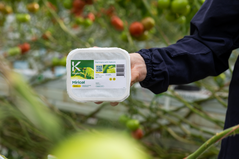 La modifica dell'imballaggio dei miridi Mirical non solo ha permesso di ottenere prestazioni migliori, ma rende questo prodotto completamente compostabile (ad eccezione del sigillo protettivo che può essere riciclato). Precedentemente disponibile in bottiglie di plastica, Mirical (Macrolophus pygmaeus) viene ora fornito su strisce di cartone ondulato compostabili in vaschetta di cartone, rendendo Mirical un prodotto più sostenibile che mai, riducendo la quantità di plastica del 99%.
