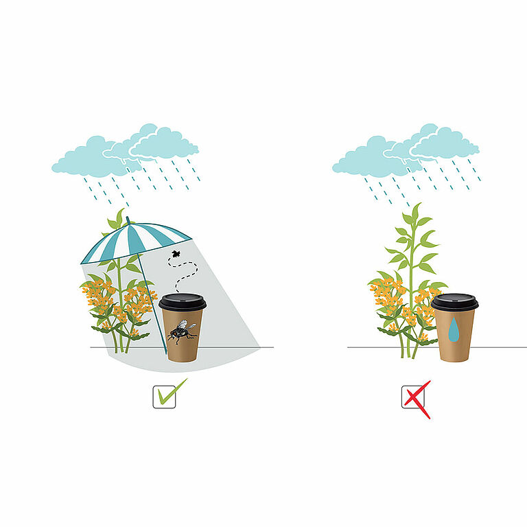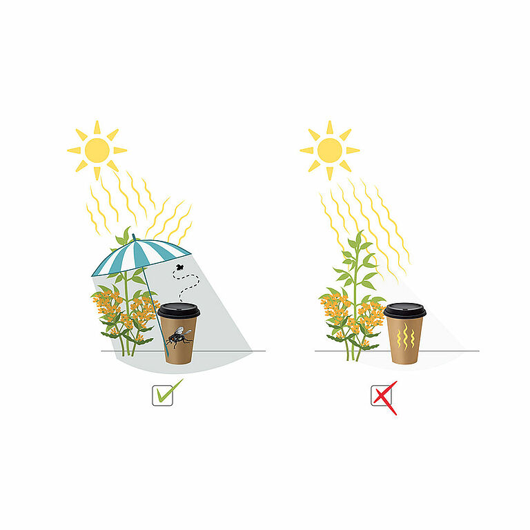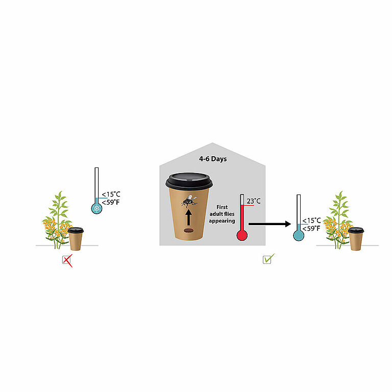 Proteggere l'apertura per le mosche dal calore. È preferibile utilizzare sacchetti/tazze di colore bianco o chiaro a temperature superiori a 20 °C.