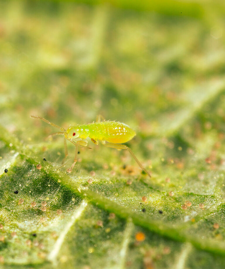 Introdurre Mirical all'inizio della stagione di crescita e fornireEntofoode/oArtefeedcome fonte di alimento, poiché la popolazione di insetti predatori ha bisogno di tempo per stabilirsi e svilupparsi. Mirical può sopravvivere anche con la linfa delle piante, ma l'assenza di prede animali rallenta notevolmente la formazione della popolazione.