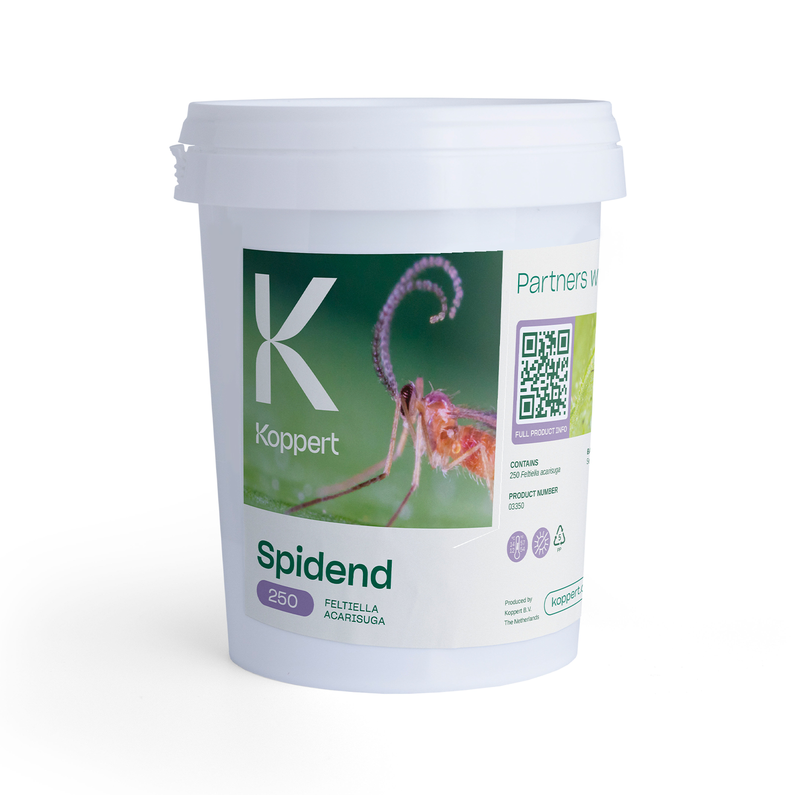 Il dosaggio di Spidend dipende dal clima, dalla coltura e dalla densità dei ragnetti rossi e va sempre adattato alla situazione specifica. Iniziare l'introduzione non appena vengono rilevati i primi acari nella coltura. I dosaggi di introduzione variano in genere da 0,25 a 25 per m2/rilascio. La distribuzione dovrà essere ripetuta almeno 3 volte a intervalli settimanali o fino al controllo completo dei parassiti. Per una consulenza sulla migliore strategia da applicare, si consiglia di rivolgersi a un consulente Koppert o a un distributore autorizzato di prodotti Koppert.