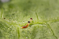 Dopo lo stadio di pupa, i cecidomidi adulti cercano attivamente colonie di ragnetto rosso e depongono le loro uova accanto ad essi. Dopo la schiusa, le larve si nutrono degli acari.